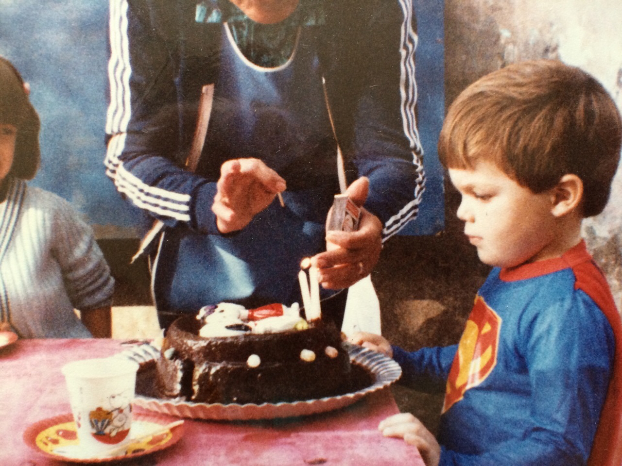 Naquele 3 de julho de 1985, o Super-Homem aí da foto apagava 4 velinhas e certamente não pensava no futuro. Nem imaginava que, três décadas depois, estaria sentado escrevendo exatamente sobre aquele dia.