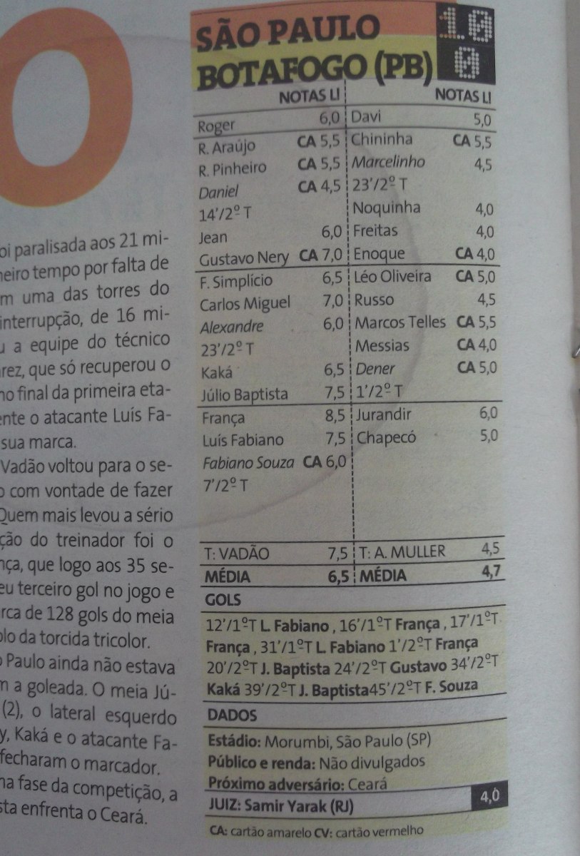 São Paulo 10 x 0 Botafogo-PB.