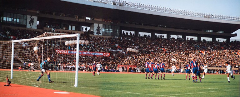 – Eheheheh… Calma, uma coisa de cada vez! Foi no Japão, filho. Fica bem longe do Brasil. O estádio chama Nacional de Tóquio. Esse barulho acho que são umas buzinas, sabe? A nossa camisa é linda, né?